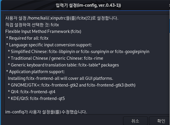 한글 설정 후에 칼리 리눅스 정상 설치 완료 하시면