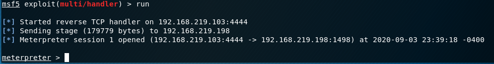 multi/handler 설정 완료 되었으므로 실행을 해준다.