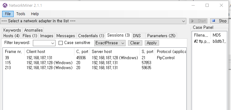 NetworkMiner는 Windows용 오픈 소스 NFAT(Network Forensic Analysis Tool)입니다( Linux / Mac OS X / FreeBSD 에서도 작동 ). NetworkMiner는 네트워크에 트래픽을 발생시키지 않고 운영 체제, 세션, 호스트 이름, 열린 포트 등을 감지하기 위해 수동 네트워크 스니퍼/패킷 캡처 도구로 사용할 수 있습니다. NetworkMiner는 또한 오프라인 분석을 위해 PCAP 파일을 구문 분석하고 PCAP 파일에서 전송된 파일과 인증서를 재생성/재조립할 수 있습니다.